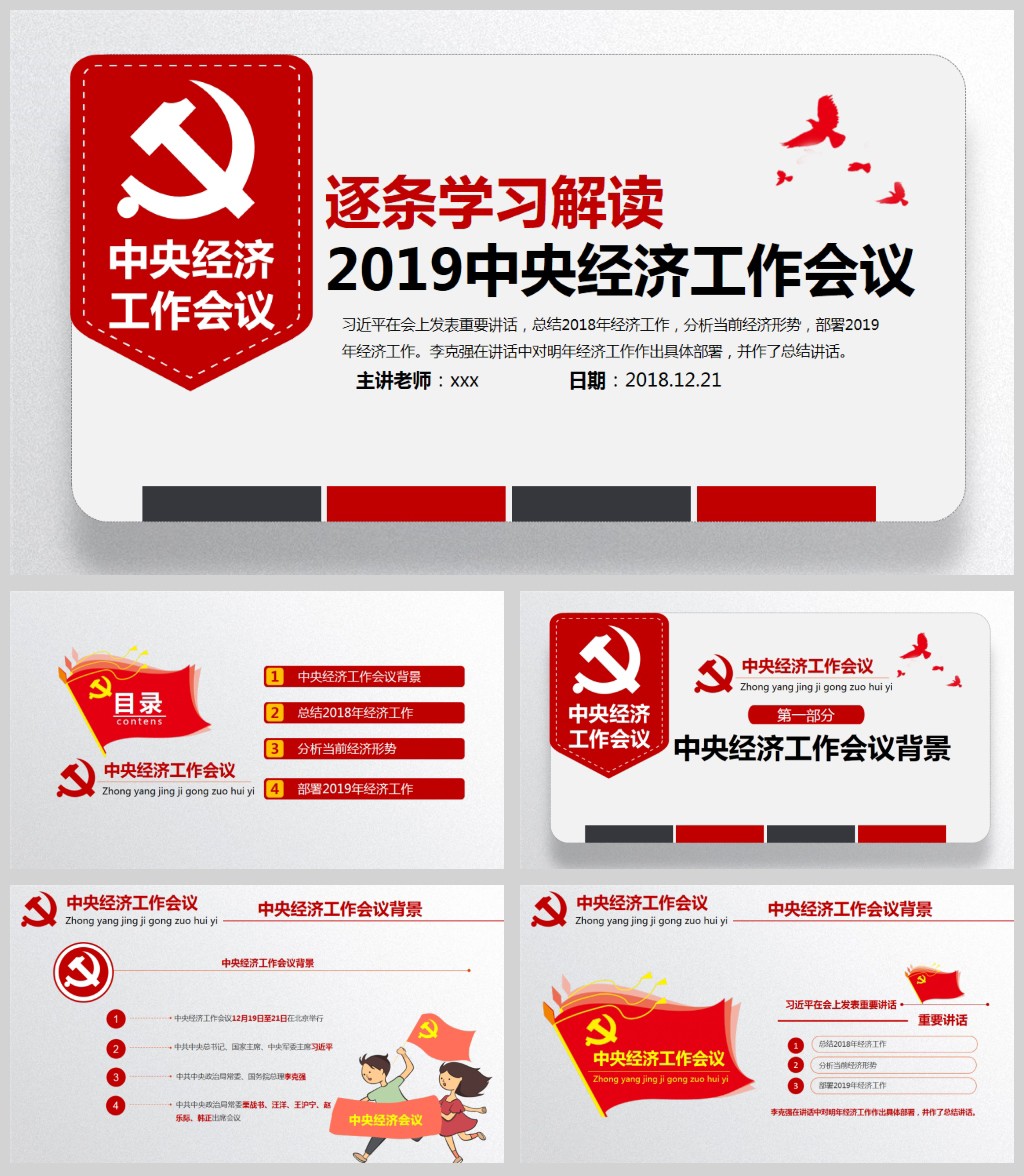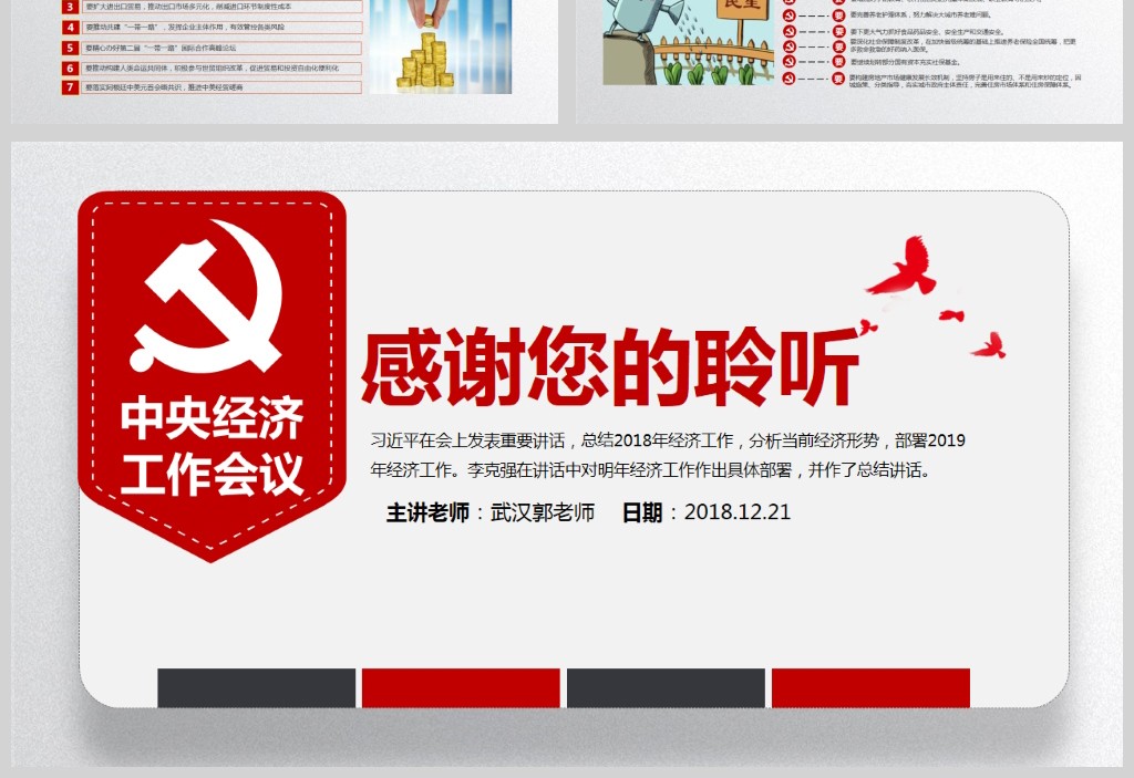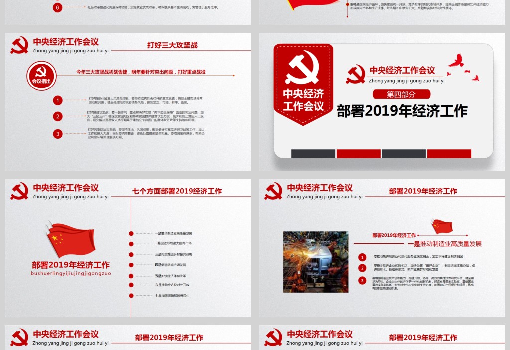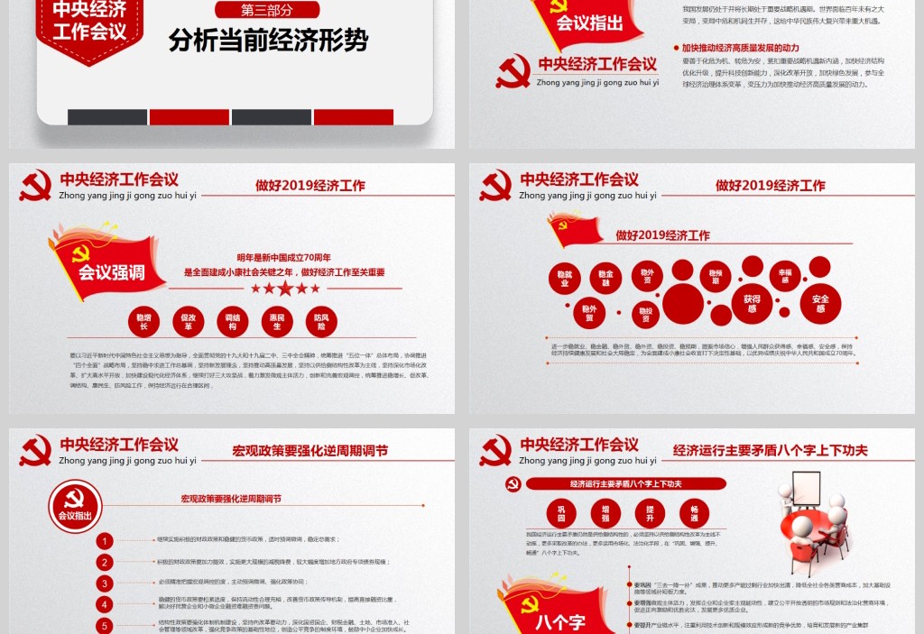 【注意】逐条学习解读2019中央经济工作会议党课PP模板含讲稿下载其他内容仅为参考,在正式场合使用请先认真校稿,避免造成不必要的麻烦及损失,网页预览图展示部分是作品的实景效果图,此效果图仅供参考,具体作品以下载后的源文件为准,另外作品授权不包含作品中使用到的字体和摄影图,下载作品后请自行替换。
