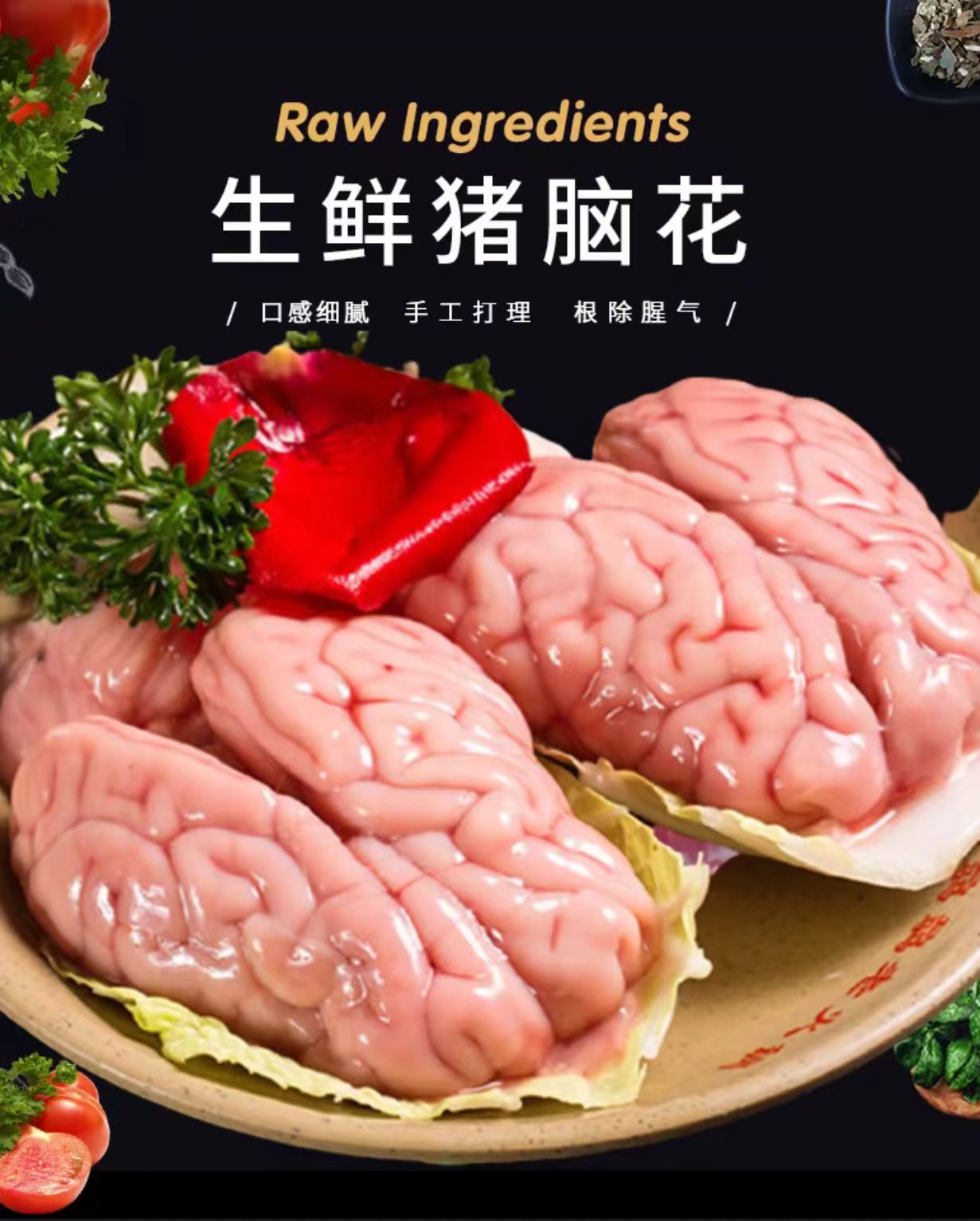 脑花,一般指猪脑,其口感细腻且独特。烹饪得当的脑花,口感滑嫩,入口即化,类似于豆腐或芝士的质感。