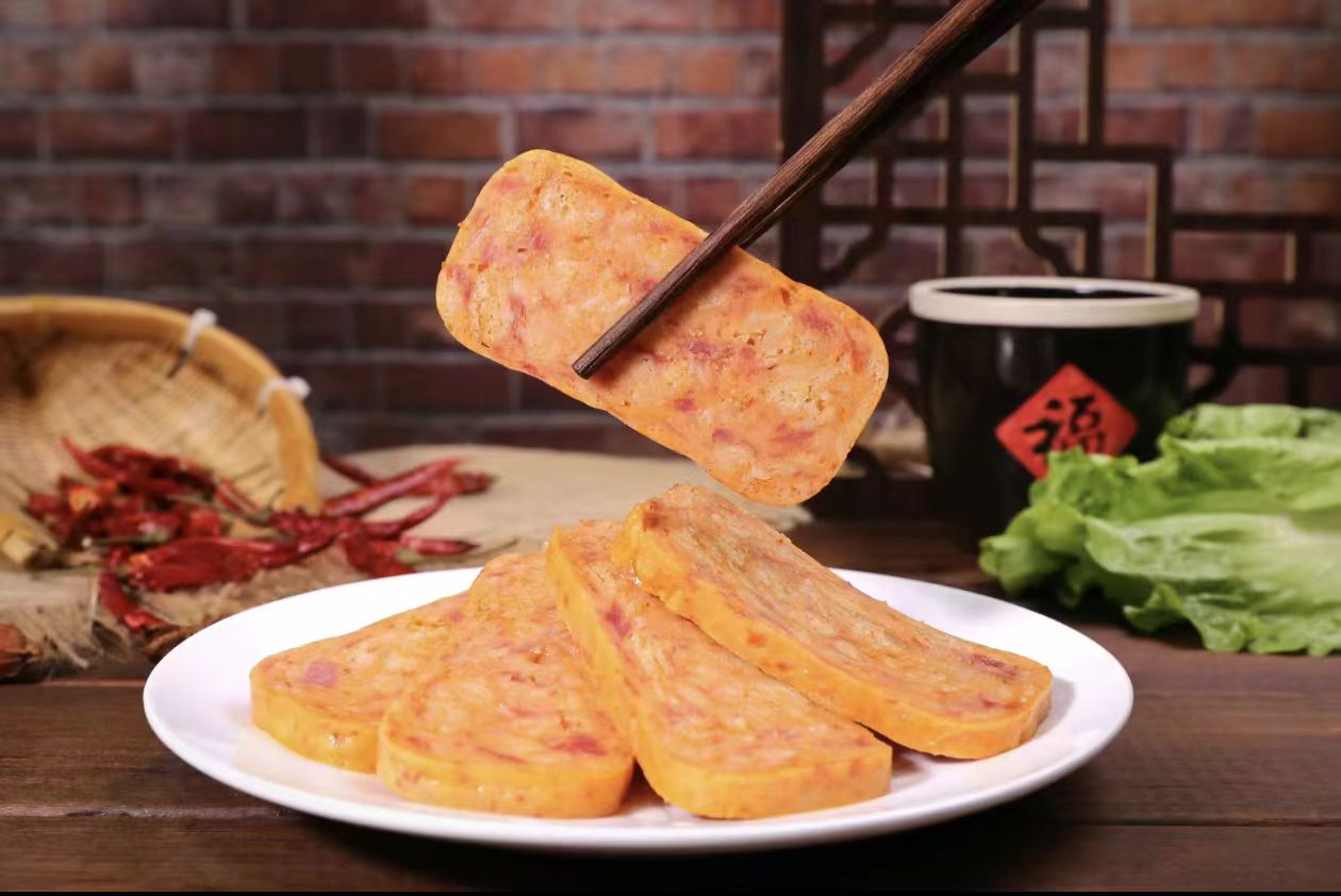 午餐肉是一种罐装压缩肉制品,通常由猪肉、淀粉、盐和香料混合制成,经过高温杀菌处理,具有较长的保质期。它起源于二战时期,作为一种方便携带和储存的军用食品,后来因其便捷性和美味逐渐成为大众食品。午餐肉的特点是质地细腻、口感丰富,可以直接食用,也可以用于烹饪各种菜肴,如炒饭、三明治、火锅等。