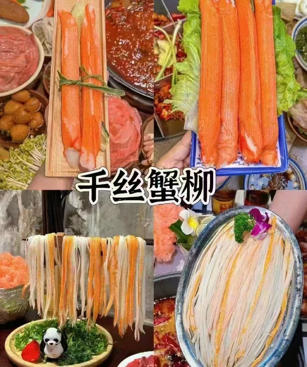 精选优质蟹肉,匠心工艺制成千丝造型。入锅轻涮,丝丝蟹柳瞬间吸满浓郁汤底,入口细腻绵滑,蟹香四溢,在舌尖上缠绕出一场鲜香的盛宴。