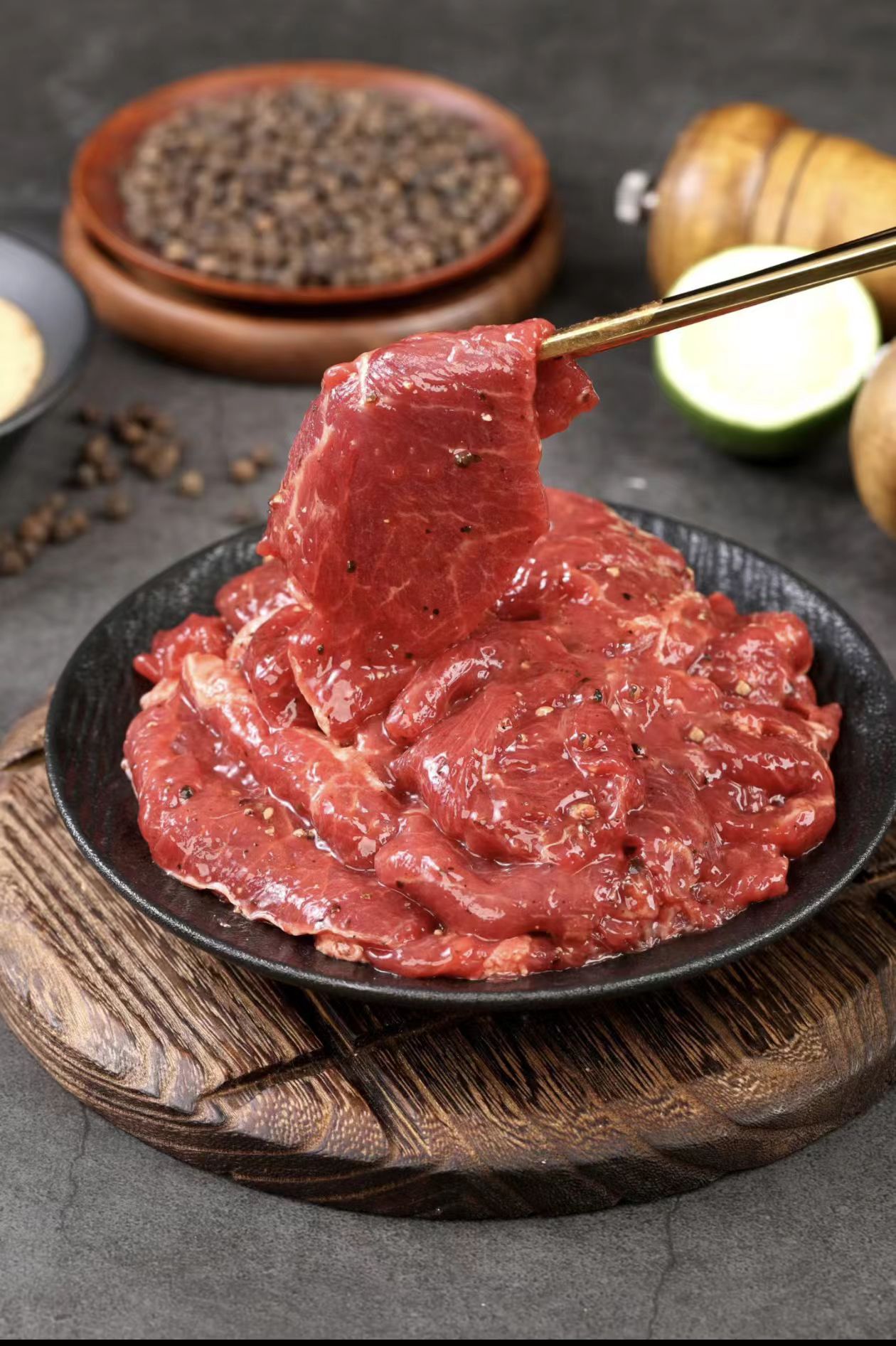 香嫩牛肉是一道以牛肉为主料的家常菜品,口味咸鲜,主料为牛肉,辅以豌豆苗、姜丝、淀粉等食材,搭配烤肉酱、酒、糖调味。制作时将牛肉逆纹切片腌制,与豌豆苗同炒后装盘,豌豆苗垫底,牛肉覆于其上 。