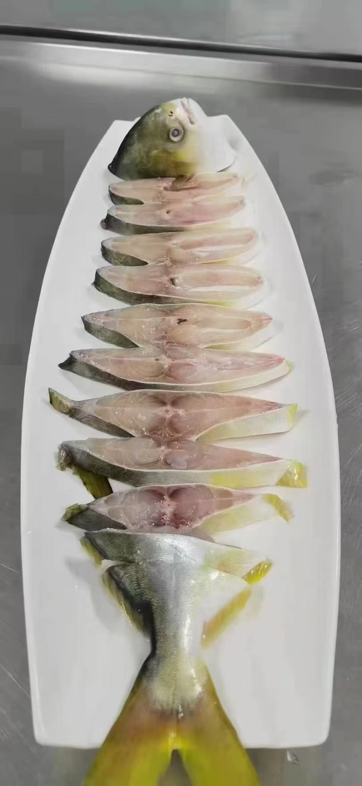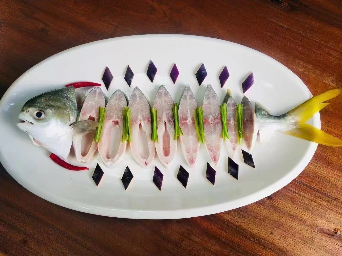 拉花金鲳鱼摆盘精美,出餐迅速,是火锅店的热门选择。