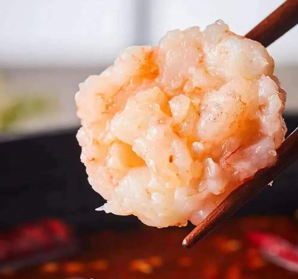 大颗粒虾滑:品珍鲜活手工打新鲜纯虾滑虾肉含量95%以上 煮熟后弹弹的特别鲜嫩!